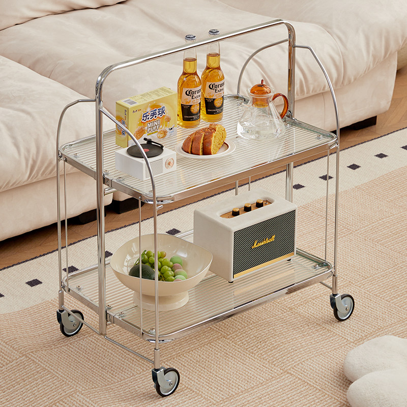 304不锈钢中古沙发边几零食小推车置物架客厅移动茶几厨房蔬菜架