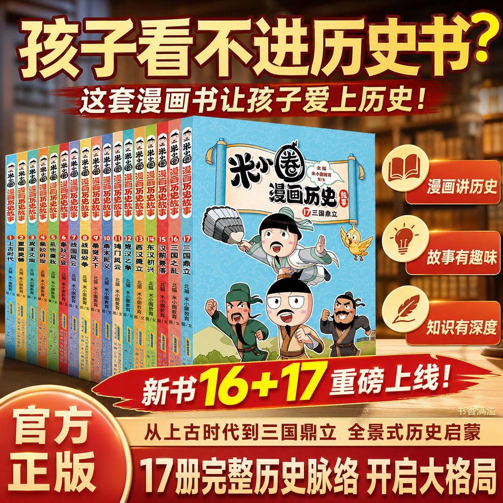 官方正版】米小圈漫画历史故事16+17三国之乱三国鼎立全套17册历史类书籍爆笑校园上古时代夏商更替漫画故事游戏书小学生课外阅读
