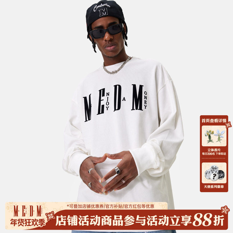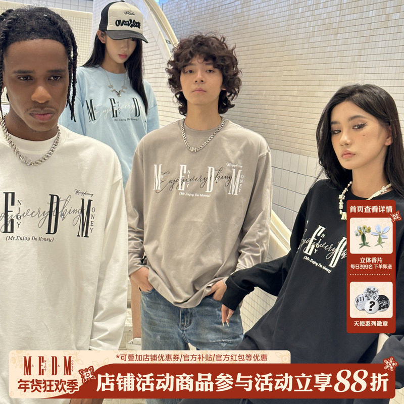MEDM国潮基础印花长袖T恤男女秋季美式宽松情侣装休闲体恤打底衫