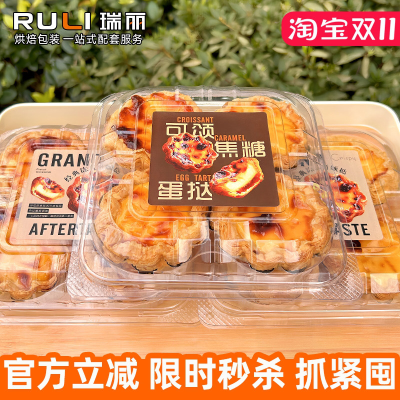 可颂四粒装太阳花蛋挞盒透明包装盒加厚4粒葡式蛋挞盒打包盒商用