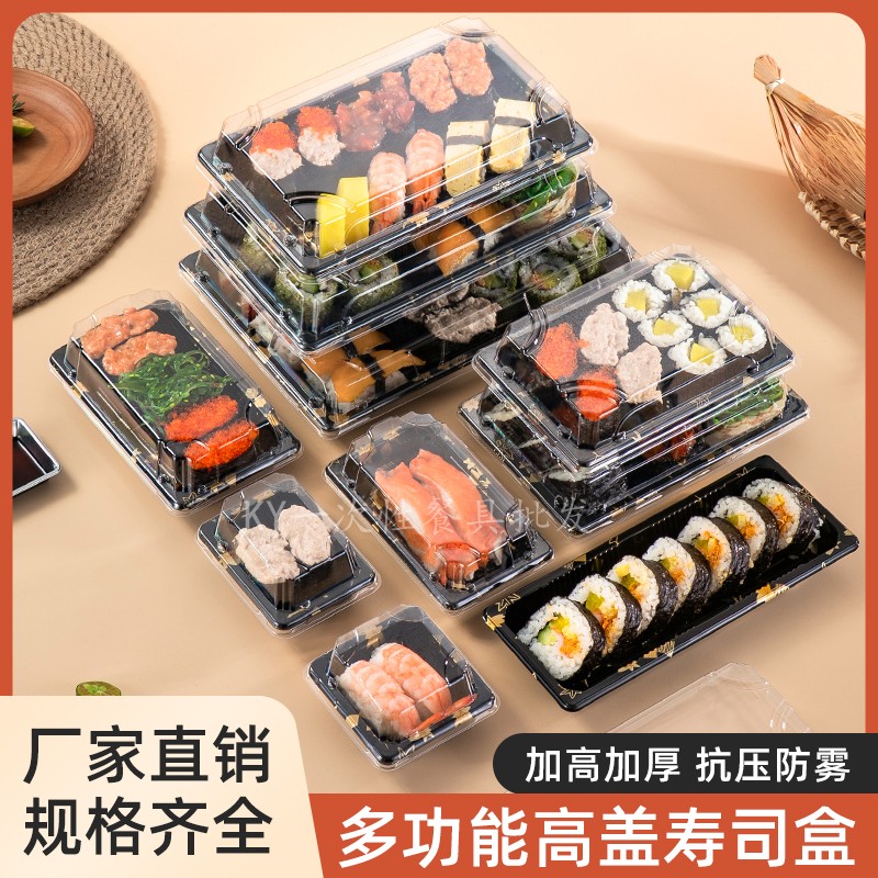 寿司盒子家用日式 一次高盖透明包装盒印花带盖长方形 便当盒包邮