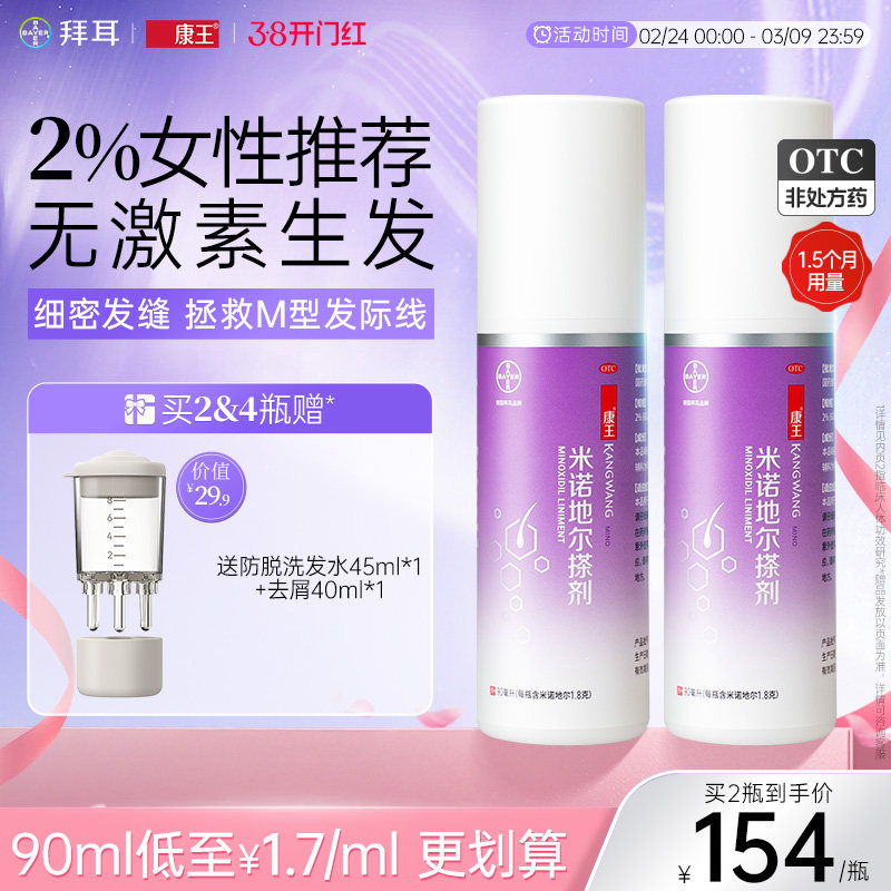 康王米诺地尔搽剂女性生发液防脱发药育发增发剂官方旗舰店2%90ml