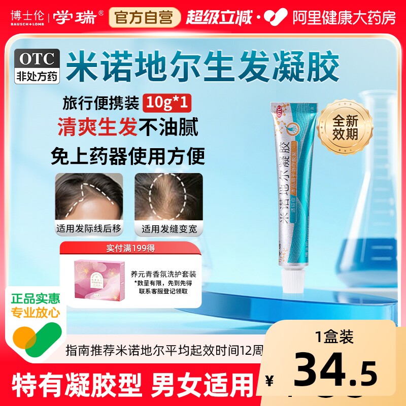 博士伦学瑞米诺地尔凝胶非酊剂生发液男女10g40g育发液发缝防脱发