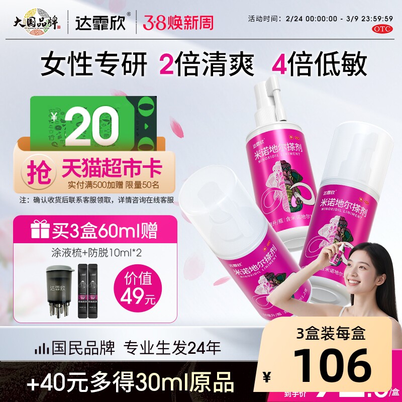 加量装】达霏欣米诺地尔搽剂女士生发液育发防脱发生发官方旗舰店