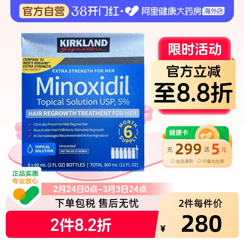 kirkland/柯克兰米诺地尔酊生发液脱发男性育发液防脱发增密6件装