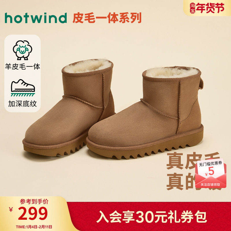 热风女鞋2025年冬季新款女士短筒加绒靴子保暖舒适雪地靴勃肯棉鞋