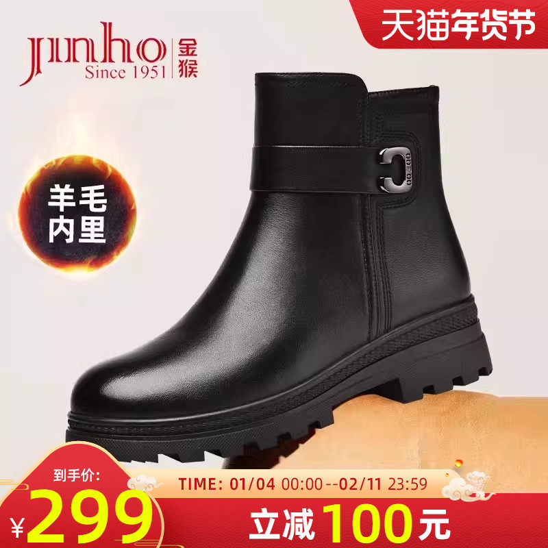 金猴女靴冬季棉靴牛皮保暖加绒加厚羊毛时尚靴子女士大棉鞋时装靴