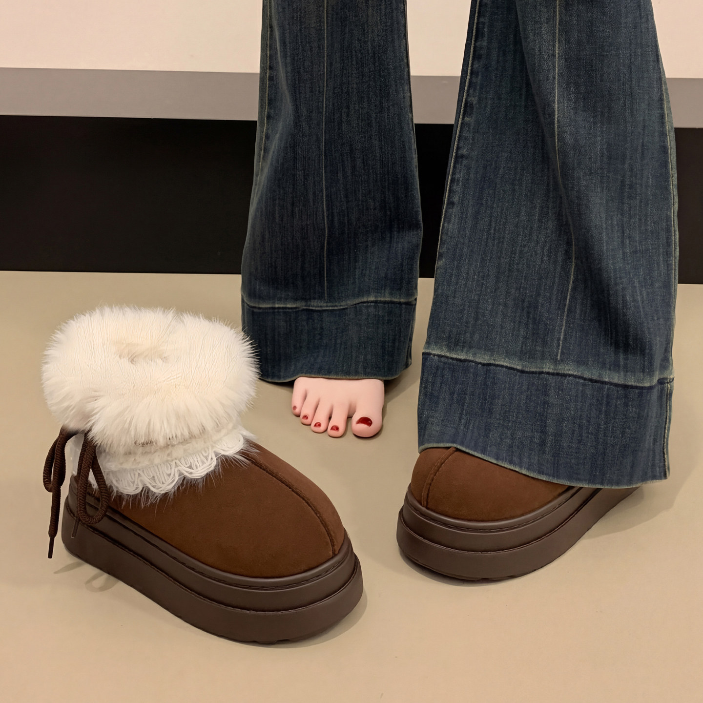 时尚费尔岛毛毛雪地靴女款加绒保暖防滑冬季棉鞋2025新款女士靴子