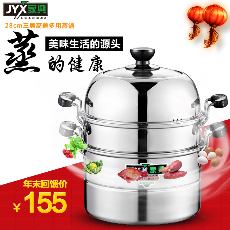 家兴蒸锅不锈钢三层大蒸锅30CM复底蒸锅多用锅家用锅多用蒸包子锅