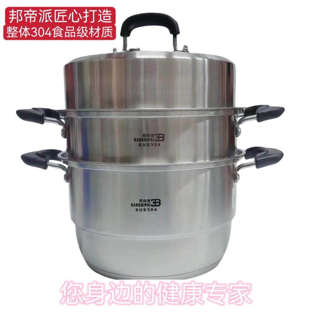 正品304不锈钢蒸锅三层复底家用馒头包子锅3层焖锅焖罐食品级材质