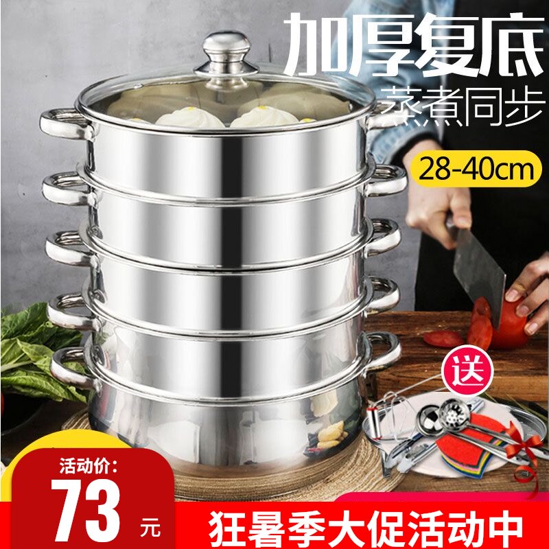 三层四层五层复底加厚不锈钢蒸锅馒头超大4层蒸笼28-40CM