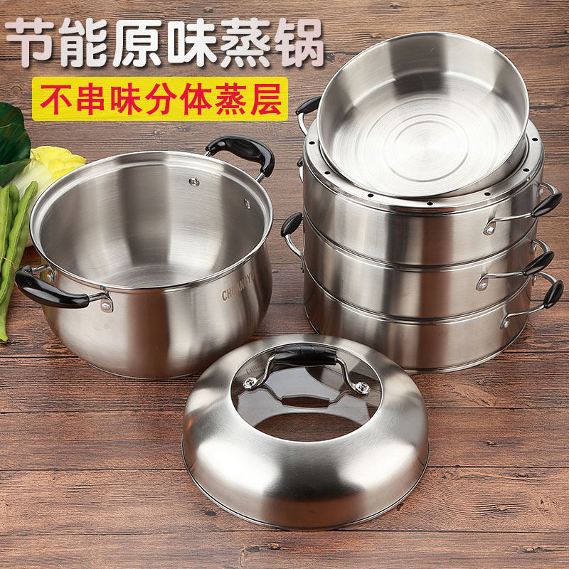 创宇304不锈钢原味蒸锅家用加厚复底多层三层四层不串味无孔蒸锅
