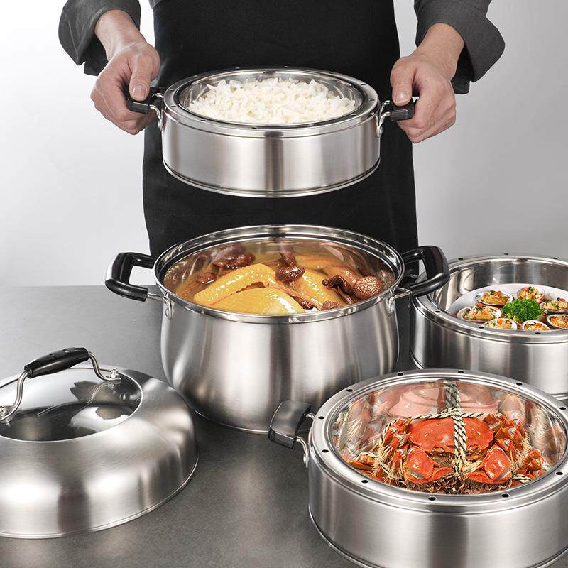 家用蒸锅不锈钢三层加厚复底汤锅2层3层多层蒸笼电磁炉煤气灶锅具