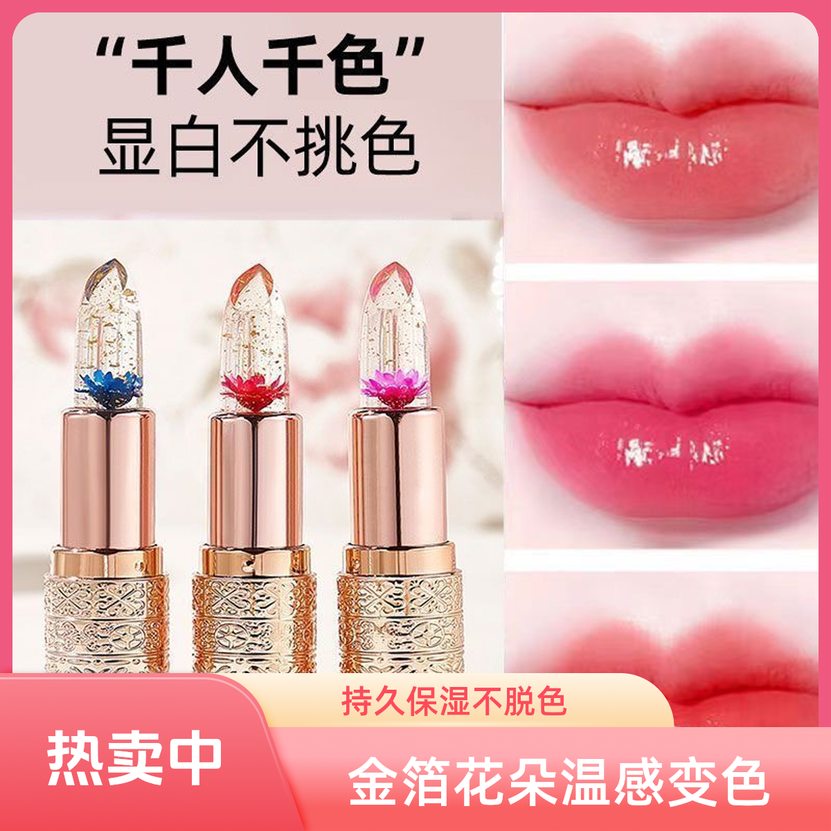 【热销】鲜花果冻补水持久显白保湿温感温变口红千人千色变色唇膏