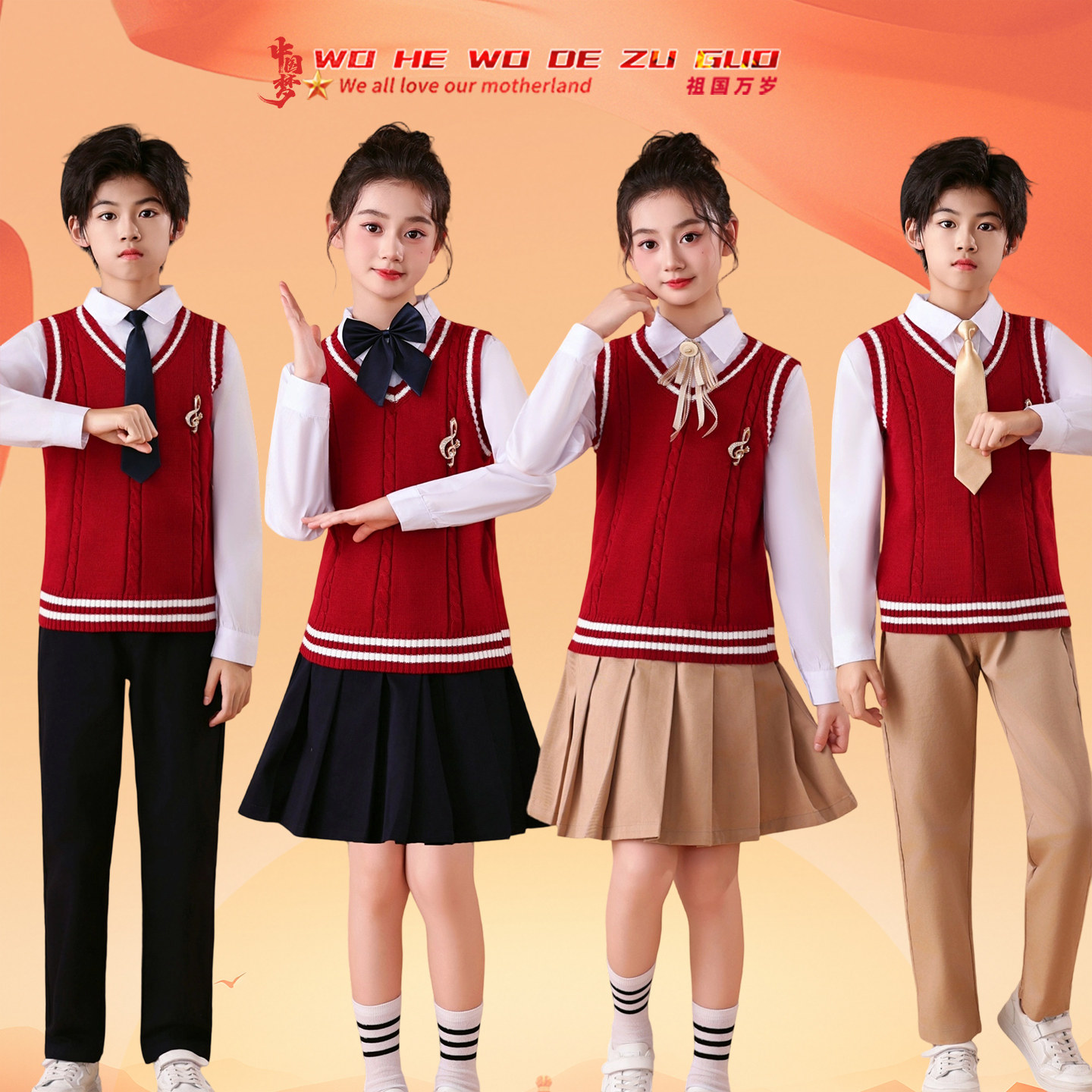 元旦小学生英伦学院风针织马甲校服幼儿园园服合唱朗诵表演服班服
