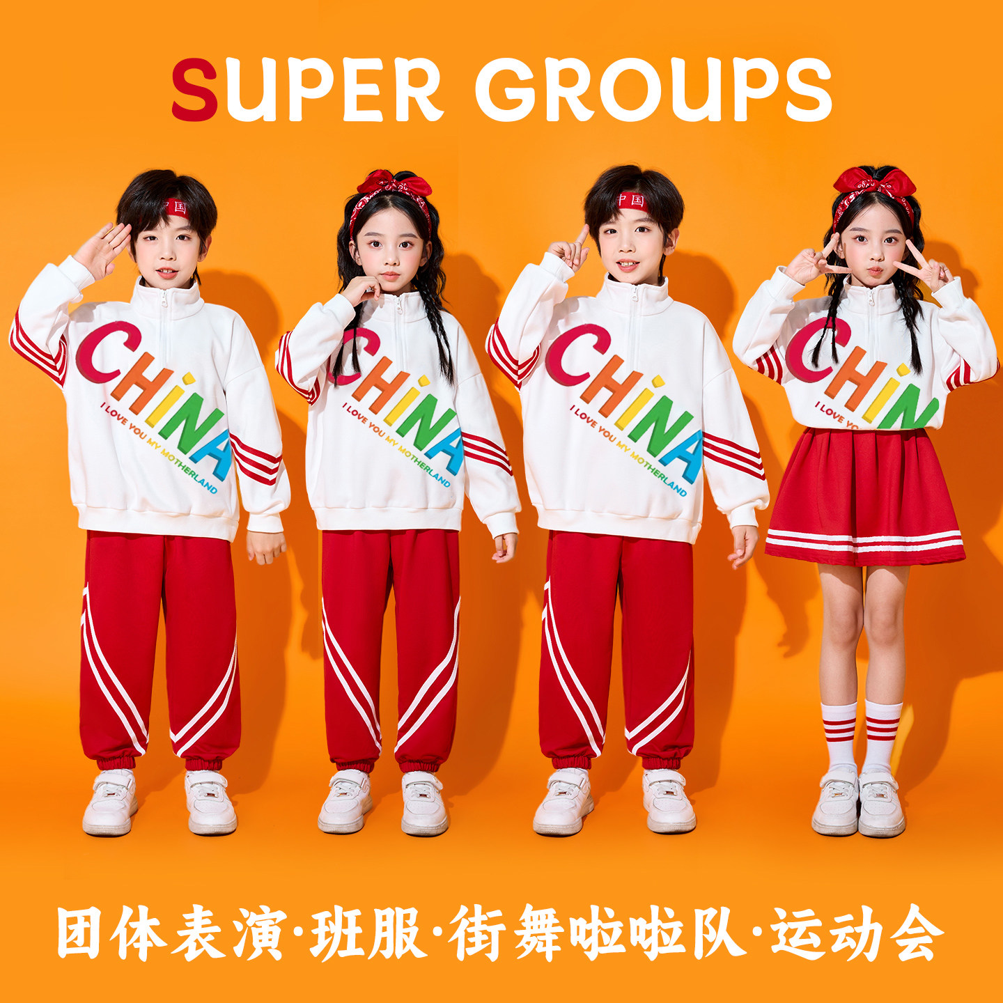 小学生运动会开幕式服装幼儿园园服中国红春秋季校服套装儿童班服