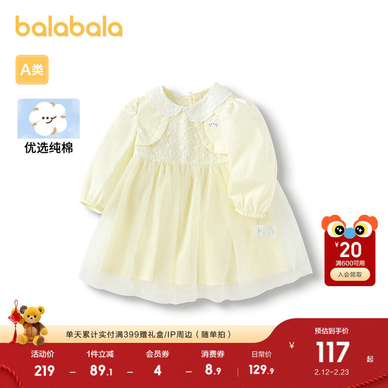 巴拉巴拉童装宝宝连衣裙儿童裙子2025春秋新款婴儿女童文艺翅膀甜