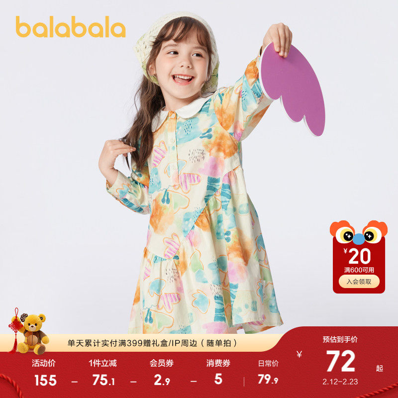 巴拉巴拉儿童公主裙春秋装学院童装女童纯棉连衣裙大童潮时尚文艺