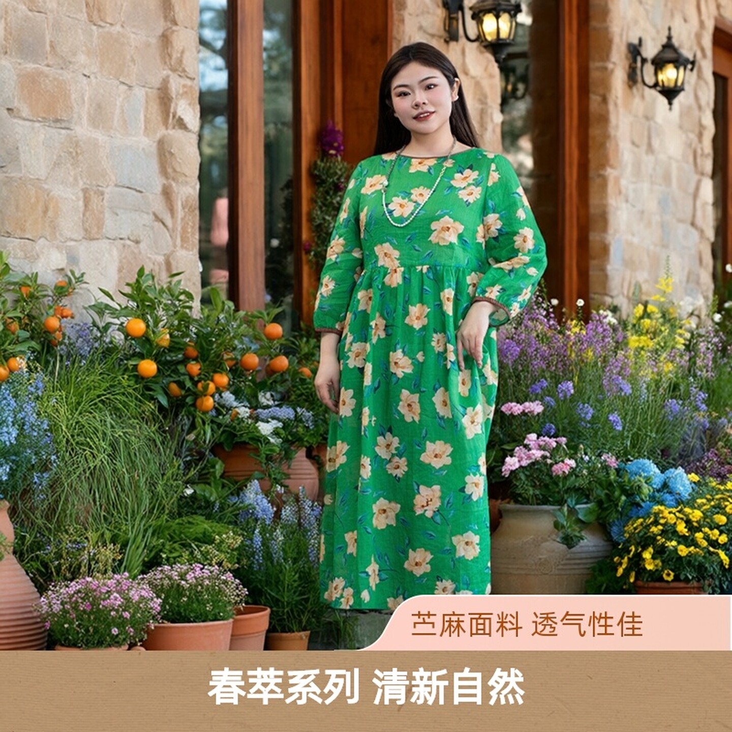 【苎麻】美丽客栈春萃连衣裙女大码胖mm早春新款显瘦文艺范中长裙