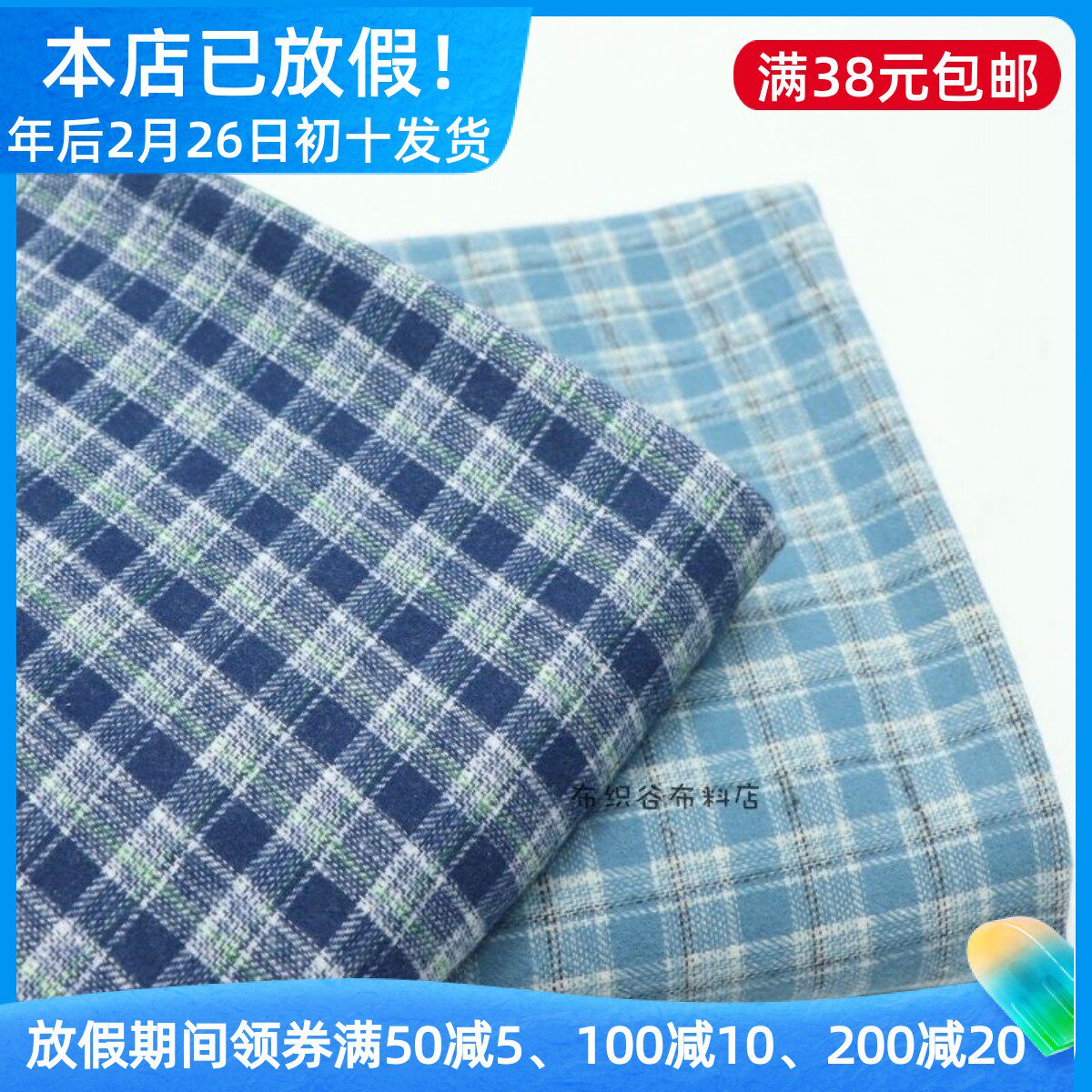 超软糯日系文艺蓝绿色磨毛纯棉格子布春秋衬衫连衣裙服装手工面料