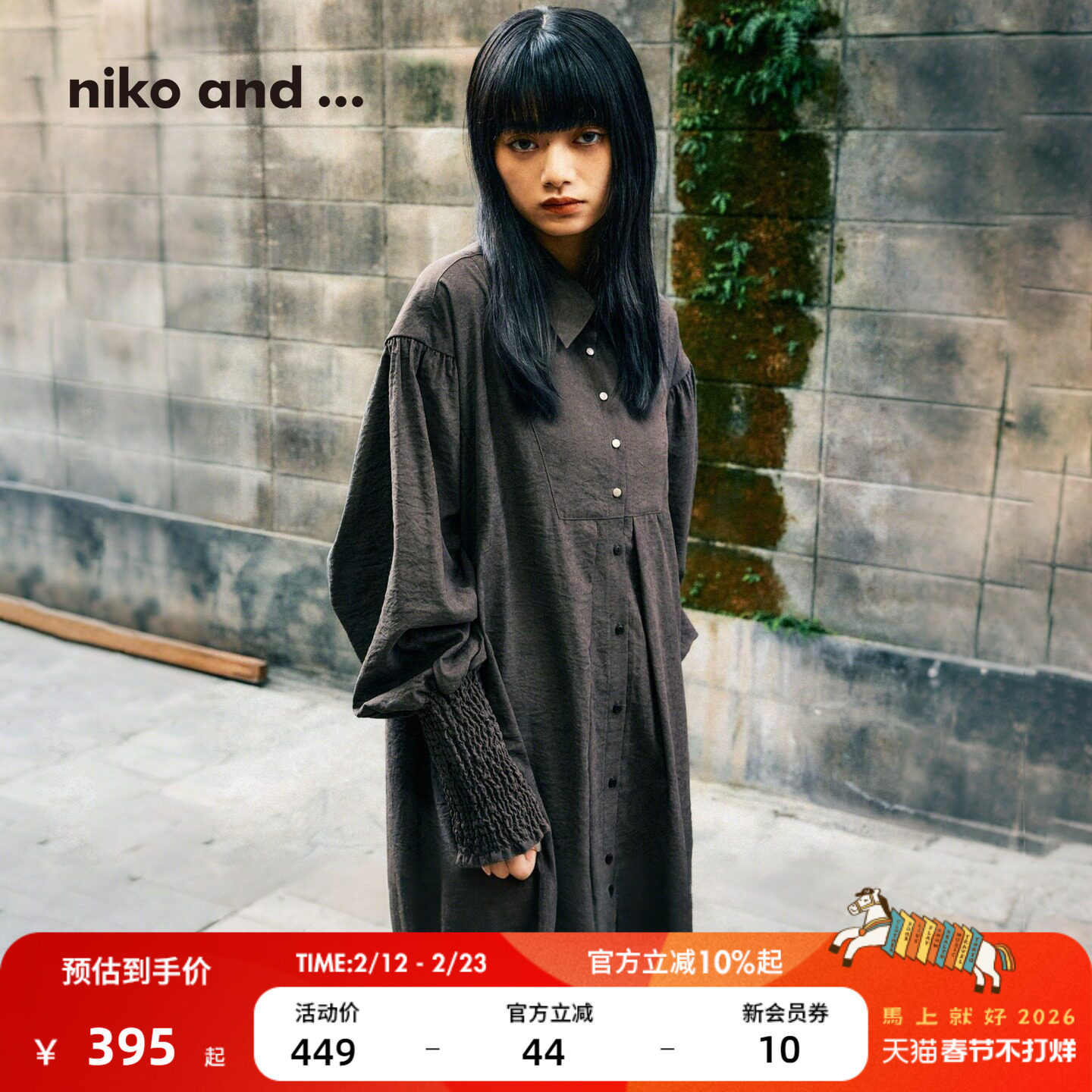 niko and ... 连衣裙女2026春季新款宽松泡泡袖文艺风长裙631324