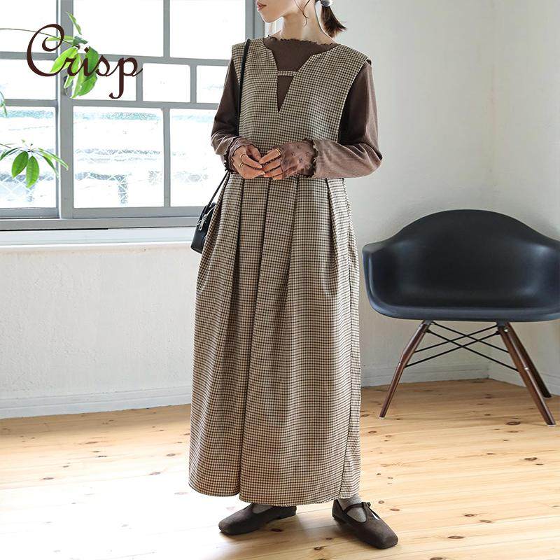CRISP日系格纹背心长裙女裙装复古文艺范儿宽松连衣裙2025春款