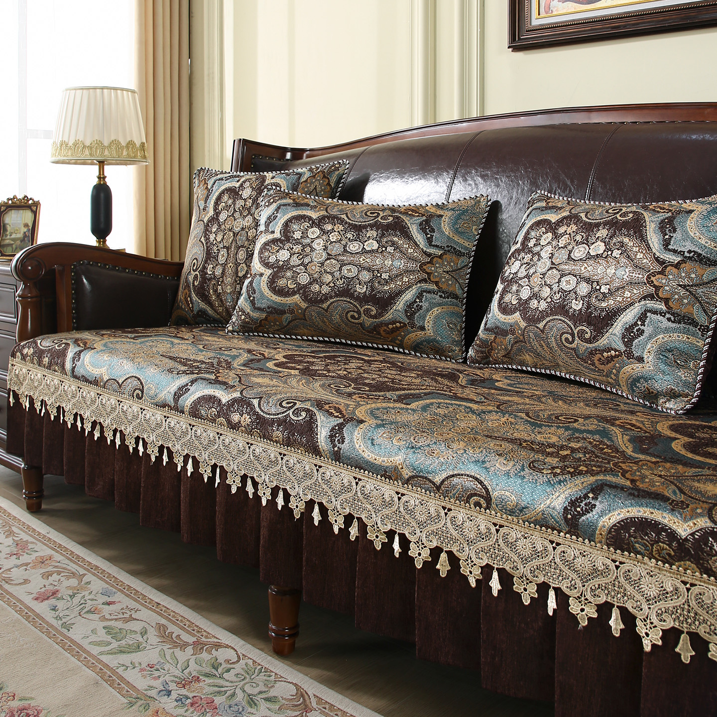 美式复古沙发垫轻奢高档冬季沙发坐垫盖巾欧式皮沙发套罩防滑座垫