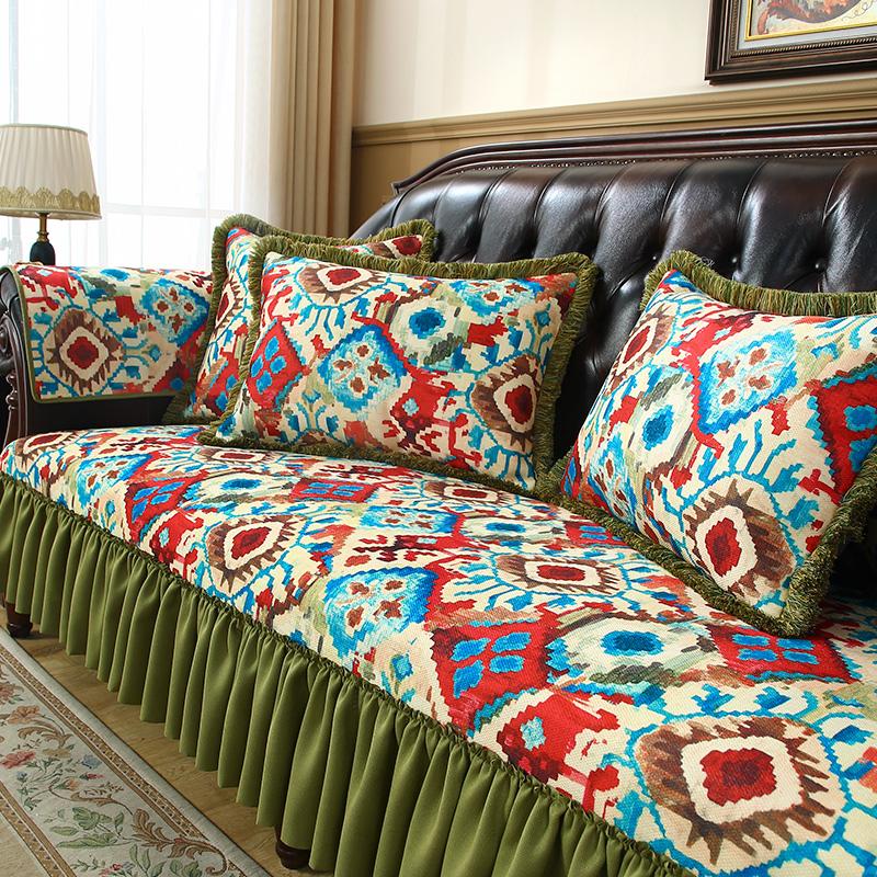 民族风沙发垫新款美式复古高级感冬季皮沙发套罩防滑坐垫盖布欧式