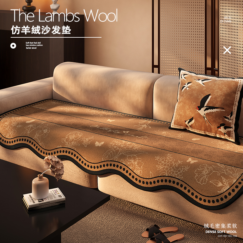 高级感复古美式皮沙发垫秋冬季毛绒2024新款四季通用防滑直排坐垫