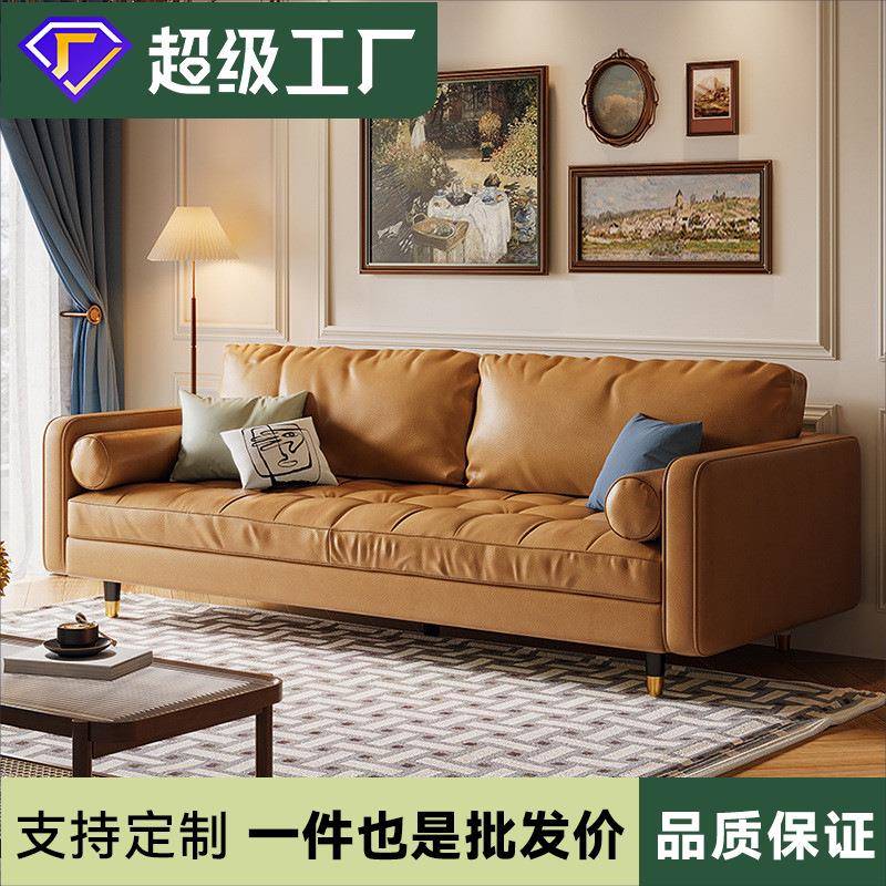 法式复古极简现代直排小户型沙发北欧油蜡真皮美式工业风客厅沙发