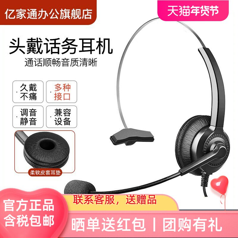 亿家通Y303话务员客服专用耳机 电话耳麦手机座机电脑降噪头戴式