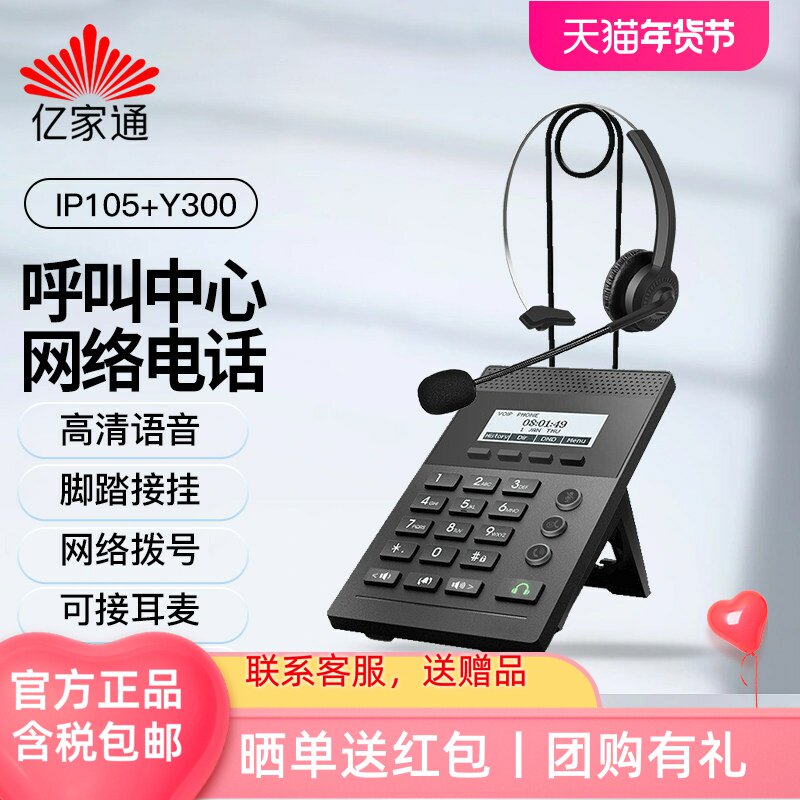 亿家通 IP电话网络话机 头戴式双耳话务耳机 呼叫中心客服话务员专用耳机 座机台式电脑降噪耳麦 外呼 IP105