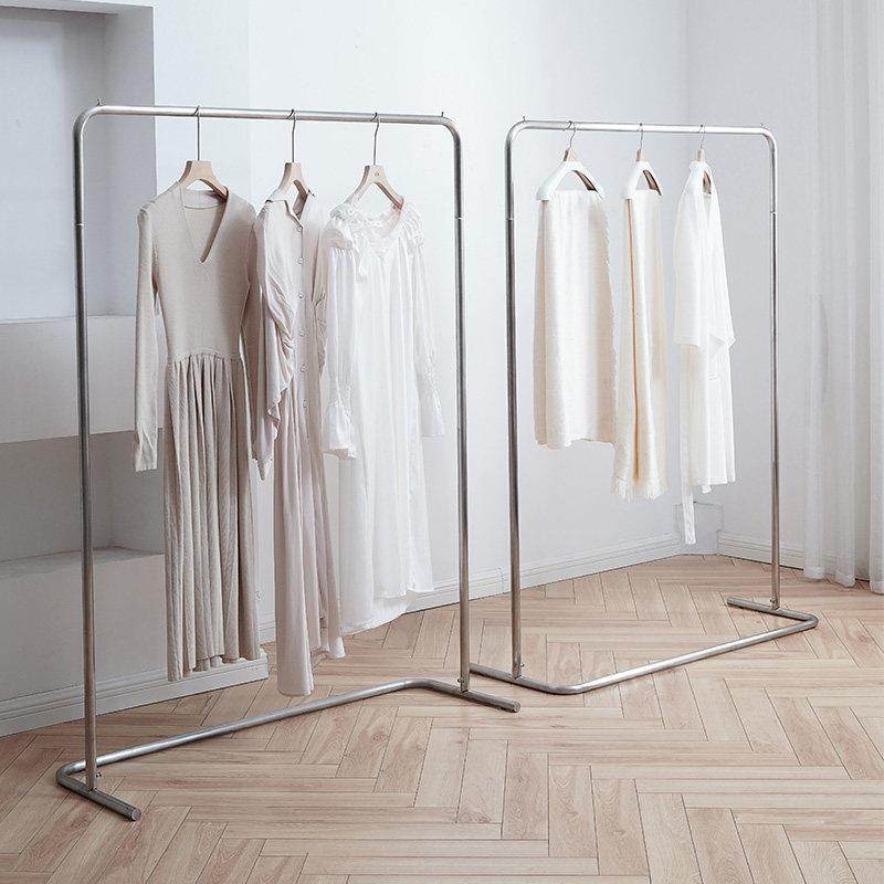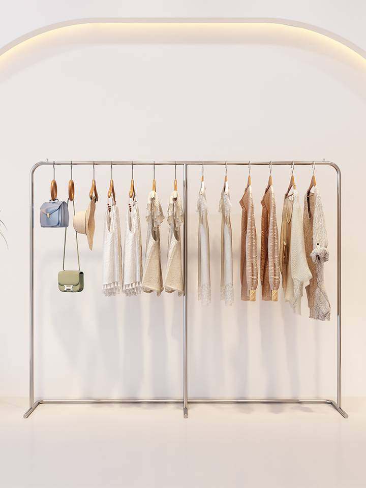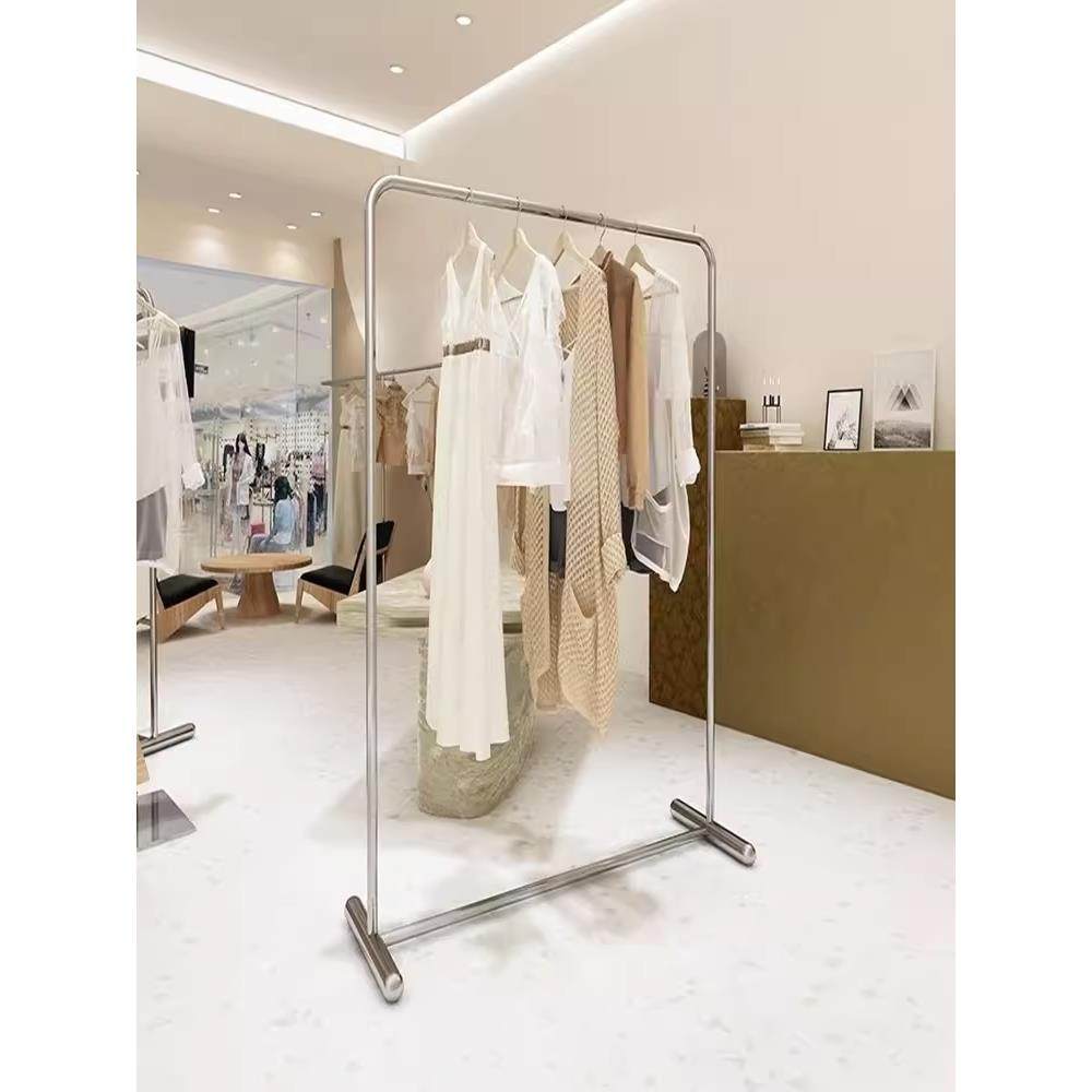 服装店展示架落地式挂衣服架子不锈钢拉丝银色展示挂衣架女装货架