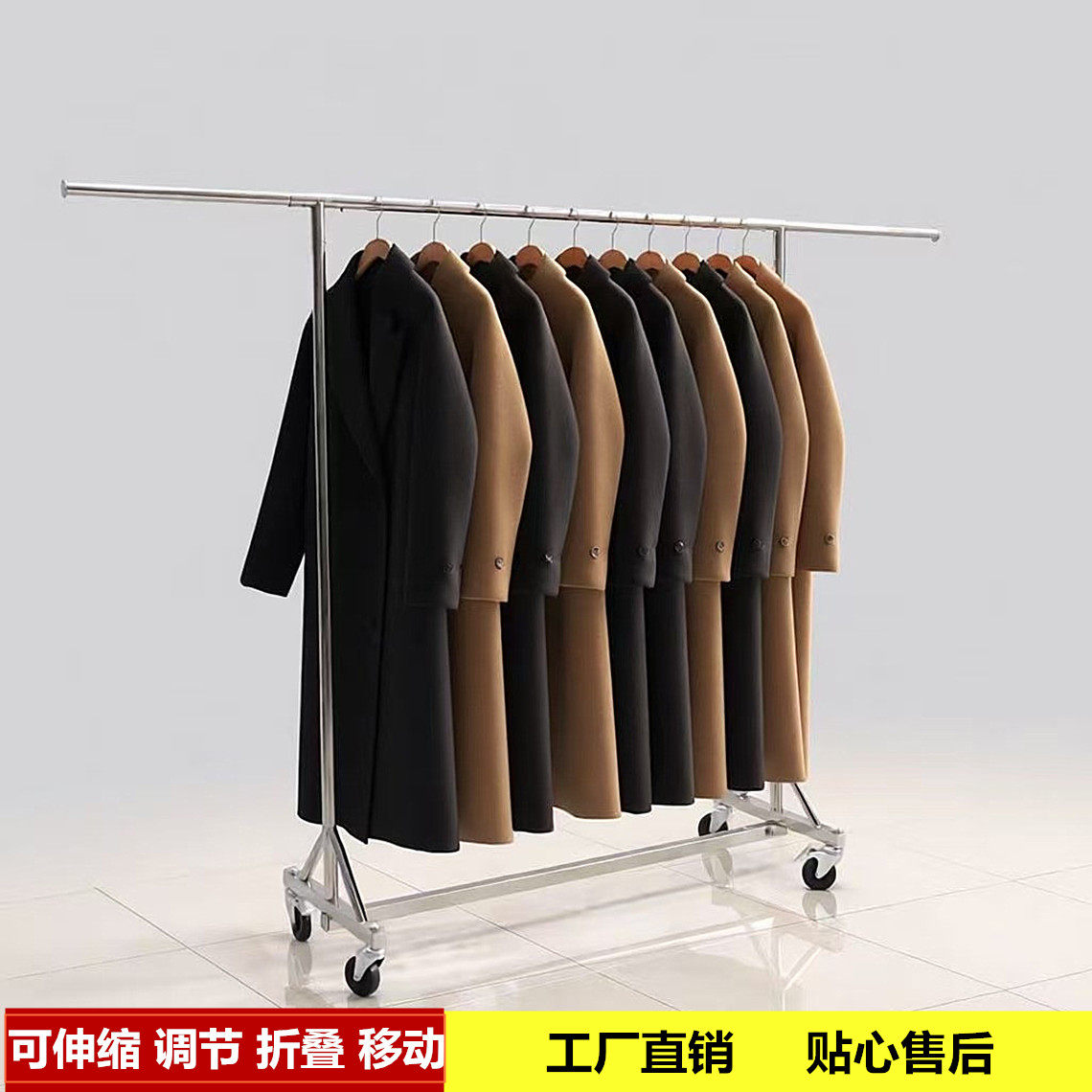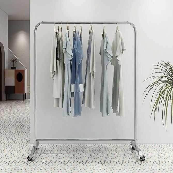 服装店展示架陈列不锈钢落地式衣架女装店专用货架移动挂衣架带轮