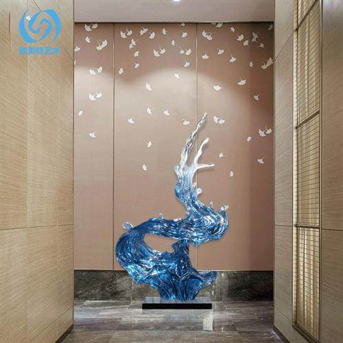 现代蓝色透明浪花落地雕塑摆件酒店大厅样板房玄关别墅售楼处摆设