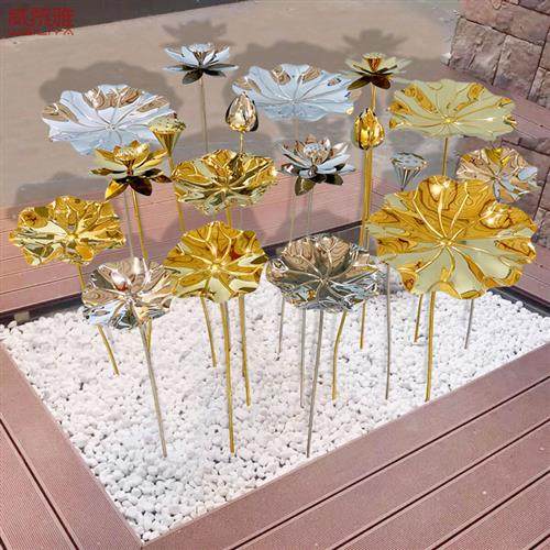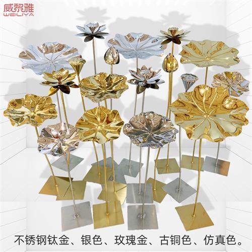 不锈钢荷花落地雕塑摆件户外酒店水池水景铁艺荷叶金属中式装饰品