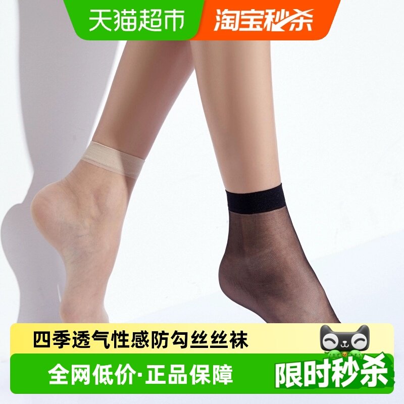 梦娜丝袜女短袜子春秋薄款黑肉色透明水晶防勾丝中筒棉底防滑耐磨