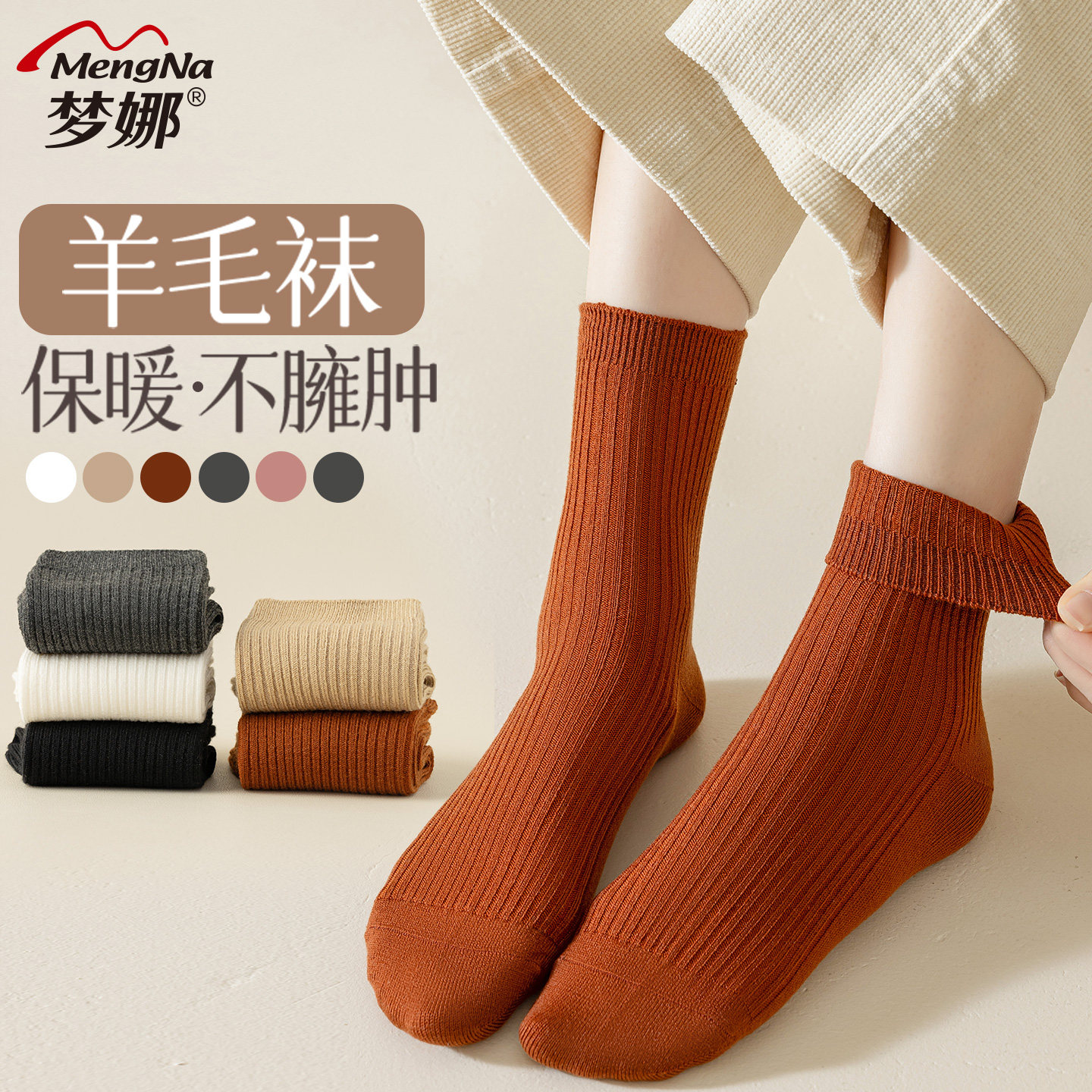 梦娜袜子女秋冬季保暖中筒袜含羊毛袜时尚百搭加厚休闲袜四季女袜