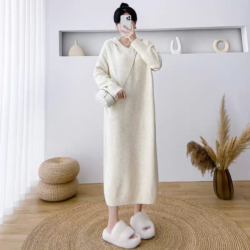 白领哥弟新秋冬针织连衣裙软糯过膝中长款时尚宽松羊毛内搭配大衣