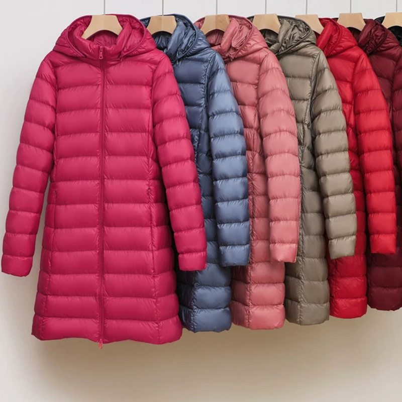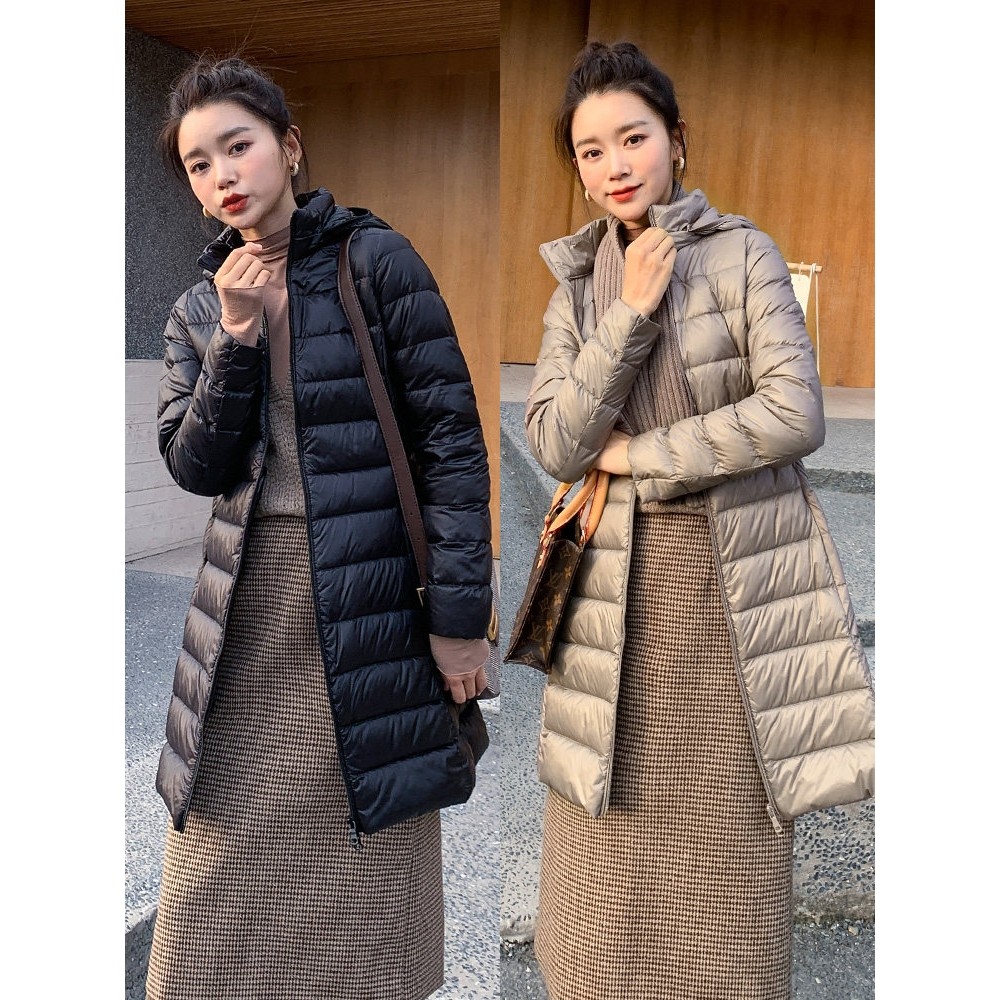 反季清仓冬季轻薄羽绒服女中长款连帽白鸭绒宽松保暖女士薄款外套