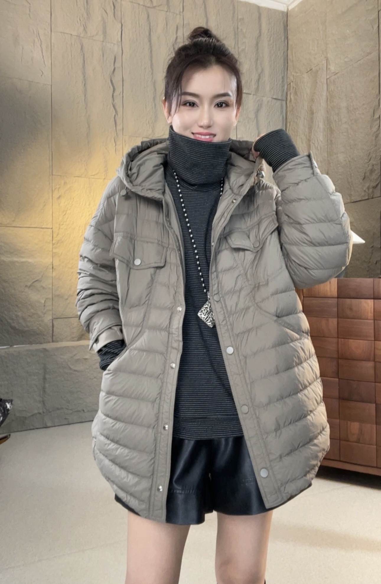 2024年秋冬新款薄款羽绒服女中长款轻薄时尚连帽90白鸭绒休闲轻便