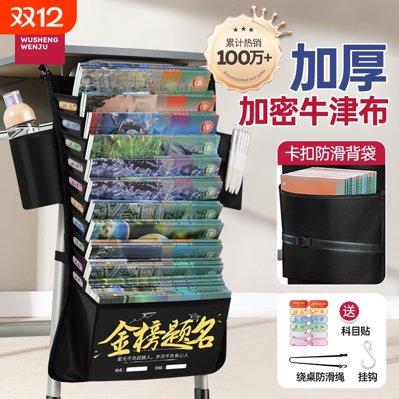 1800D悟生顶配版挂书袋课桌收纳学生书桌侧边挂袋教室书本收纳袋加厚大容量初中高中生神器桌面书立置物架
