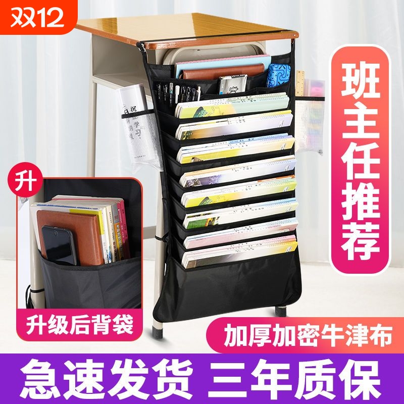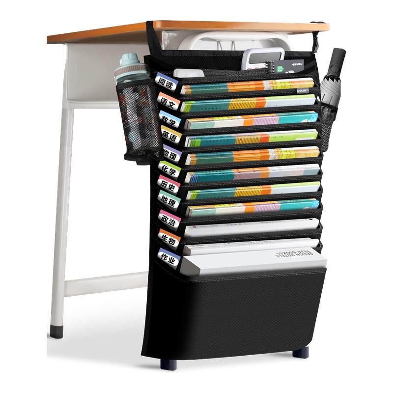 2025新款书袋课桌收纳学生挂袋书桌边侧旁初高中生小教室书本装放书神器多功能书立架桌面大容量防尘防滑带黑