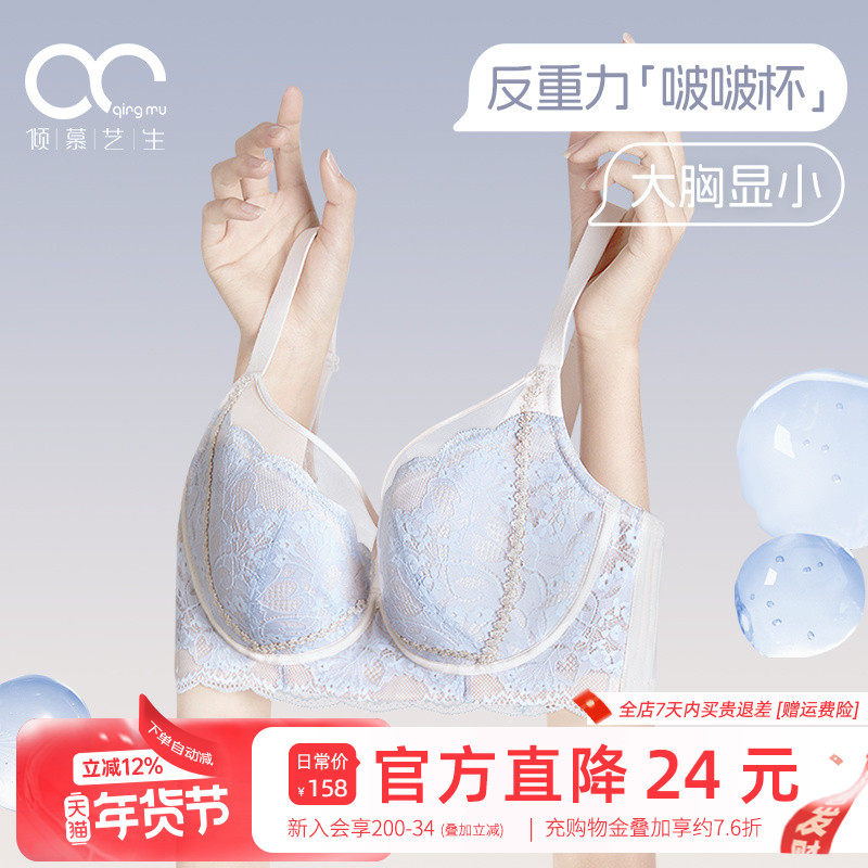 AH文胸套装性感蕾丝超薄款聚拢大胸显小纯欲上托收副乳胸罩内衣女