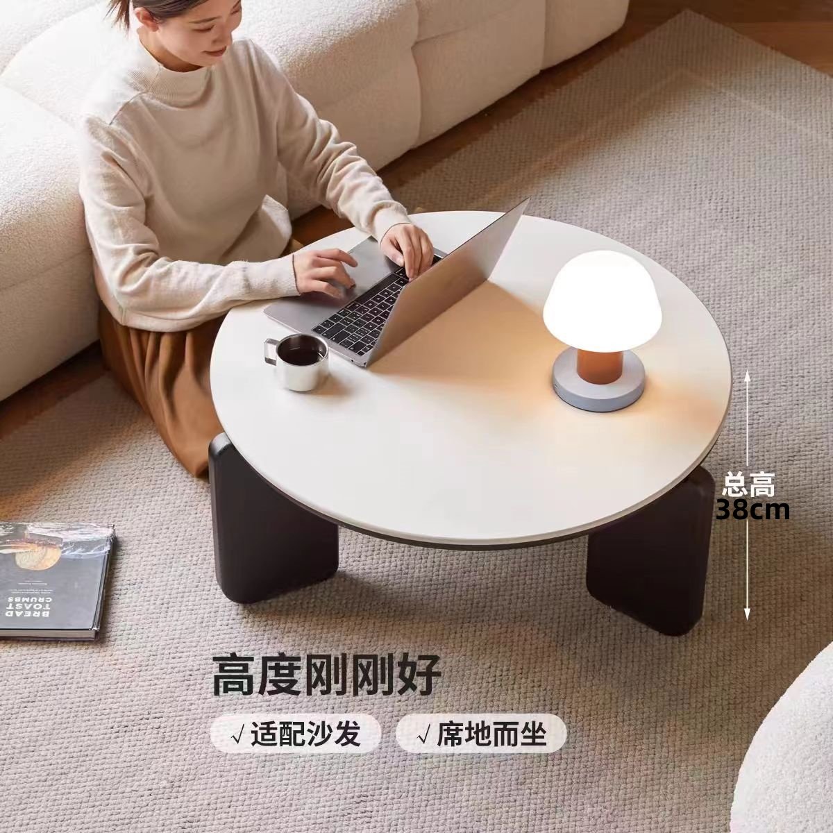 实木纯白岩板茶几北欧客厅边型台几BKX圆形茶橡木小户黑简色易茶