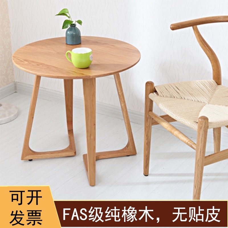 实木餐桌圆桌小茶几白橡木餐桌椅简约现代家用阳台角几休闲洽谈桌