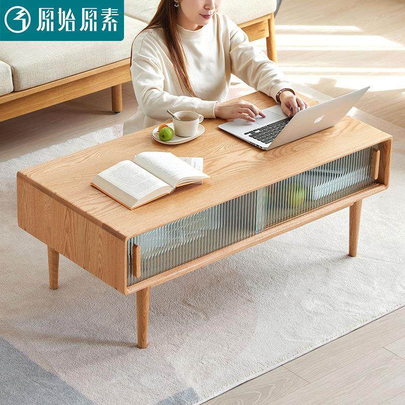 北欧橡木茶几咖啡桌全实木茶几客厅原木色茶桌白橡木茶几简约现代