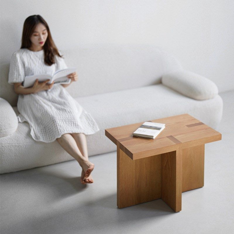 侘寂风白橡木边几客厅小户型沙发艺术茶几简约角几日式方型小桌子