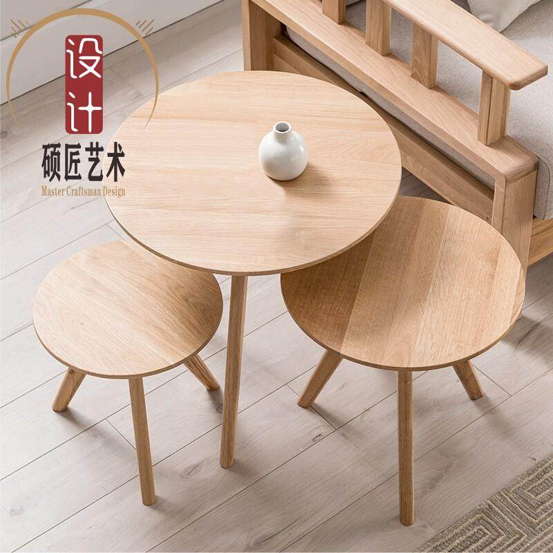 白橡木小圆茶几北欧沙发边几全实木圆几角几简约客厅茶几咖啡边桌