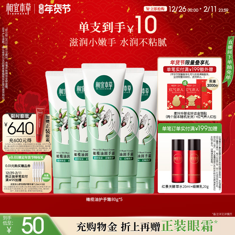 相宜本草橄榄油护手霜5支滋润保湿不油腻手部护理嫩肤便携润手霜
